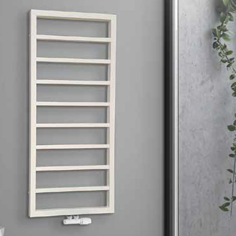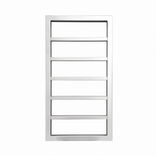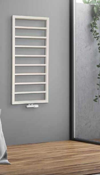 Prostota szeroko położonych poziomych profili o prostokątnym przekroju i prostokątny kształt konstrukcji będzie pasował do każdego wystroju łazienki i nada jej wdzięku.