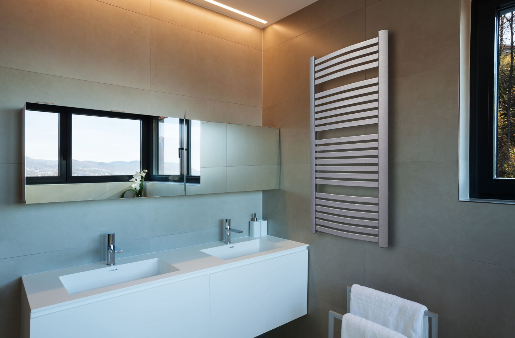 Szeroka gama kolorów RAL i kolorów specjalnych pozwala na dobór odpowiedniej kolorystyki grzejnika, który doskonale wkomponuje się w przestrzeń łazienki i będzie pasował do jej aranżacji. Aktualnie wybór jest niemal nieograniczony i pozwala na doskonałe zrealizowanie życzeń klienta.