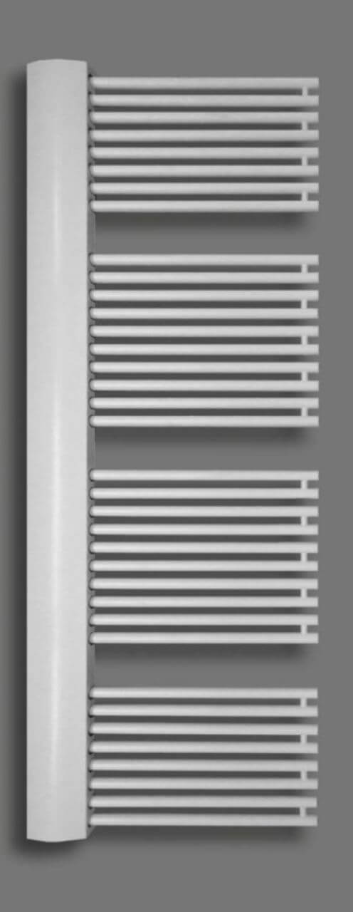 Jego geometryczny kształt – poziome, okrągłe rurki, z powodzeniem się sprawdzi we wnętrzach nowoczesnych. Brak pionowych rurek z drugiej strony nadaje mu lekkości oraz ułatwia suszenie ręczników.