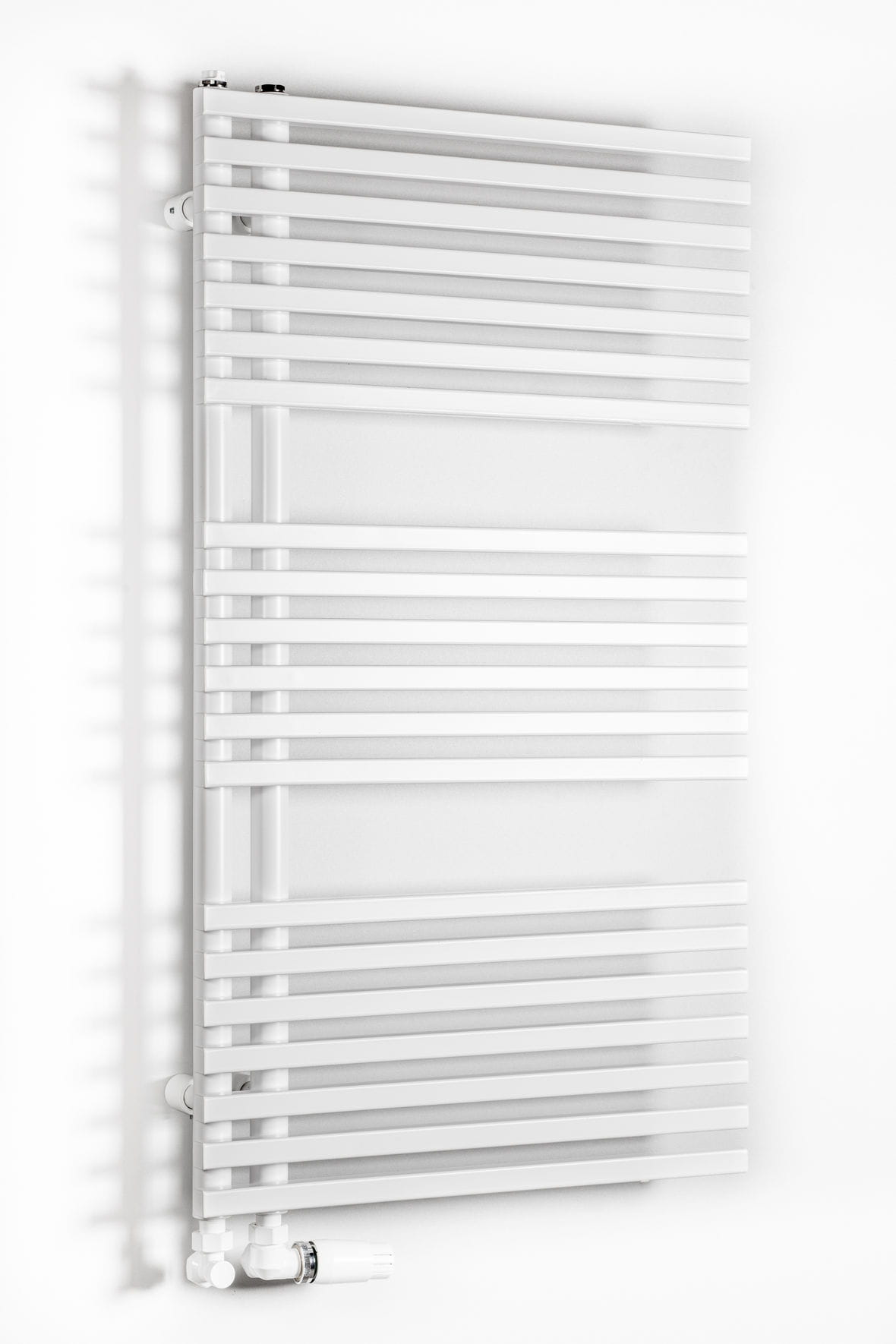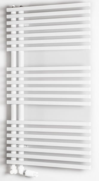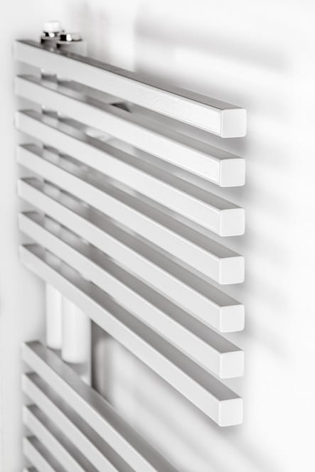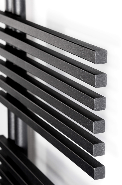 Jego geometryczny kształt – poziome, kwadratowe rurki, z powodzeniem się sprawdzi we wnętrzach nowoczesnych. Brak pionowych rurek z drugiej strony nadaje mu lekkości oraz ułatwia suszenie ręczników.