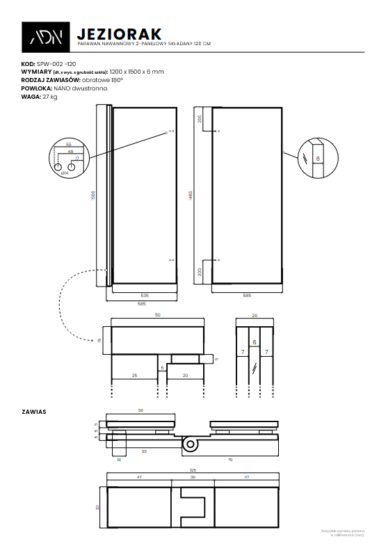 Parawan nawannowy 2-panelowy składany JEZIORAK
