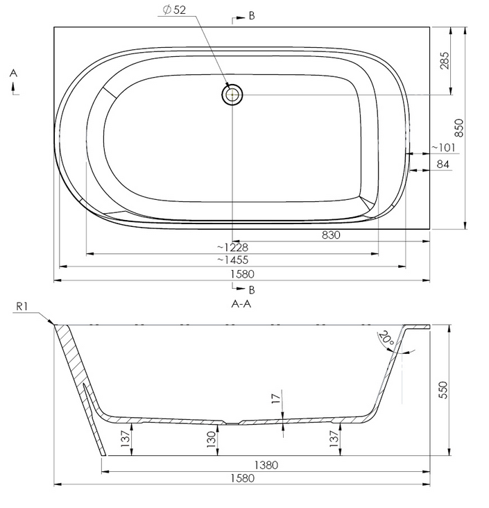 Wanna wolnostojąca narożna Emporia NUVIO Prawa 158x85cm