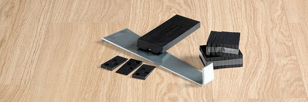 Zestaw montażowy Quick-Step zawiera wszystko, czego potrzebujecie do szybkiego montażu podłogi bez ryzyka jej uszkodzenia.