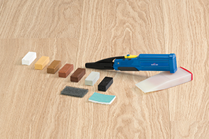Drobne uszkodzenia powierzchni można łatwo naprawić za pomocą Quick-Step Repair Kit w kolorze dobranym do podłogi. Możecie po prostu odtworzyć kolor swoich uszkodzonych desek przy użyciu jednego z siedmiu kawałków wosku, tak dobranych, aby obejmowały wszystkie kolory Quick-Step. Ten specjalny zestaw do naprawy zawiera nóż do topienia, grzebień do czyszczenia i siedem bloków wosku, które wystarczają do odtworzenia wszystkich kolorów podłogi.