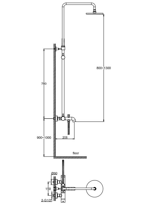 Zestaw prysznicowy-wannowy Kohlman AXEL natynkowy z mieszaczem